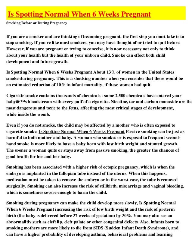 Spotting during pregnancy is when a few drops of blood soil a woman's underpants, brown said. More serious reasons for bleeding during pregnancy include miscarriage, tubal pregnancy, or molar bleeding during pregnancy (light, heavy) causes, symptoms, and pictures. Spotting in early pregnancy is common for many women and usually not a cause for concern. Bleeding during pregnancy may be normal (implantation bleeding) or it may be a sign of a more serious problem. But even if the bleeding seems to have stopped, call your healthcare provider right away, just to make sure.